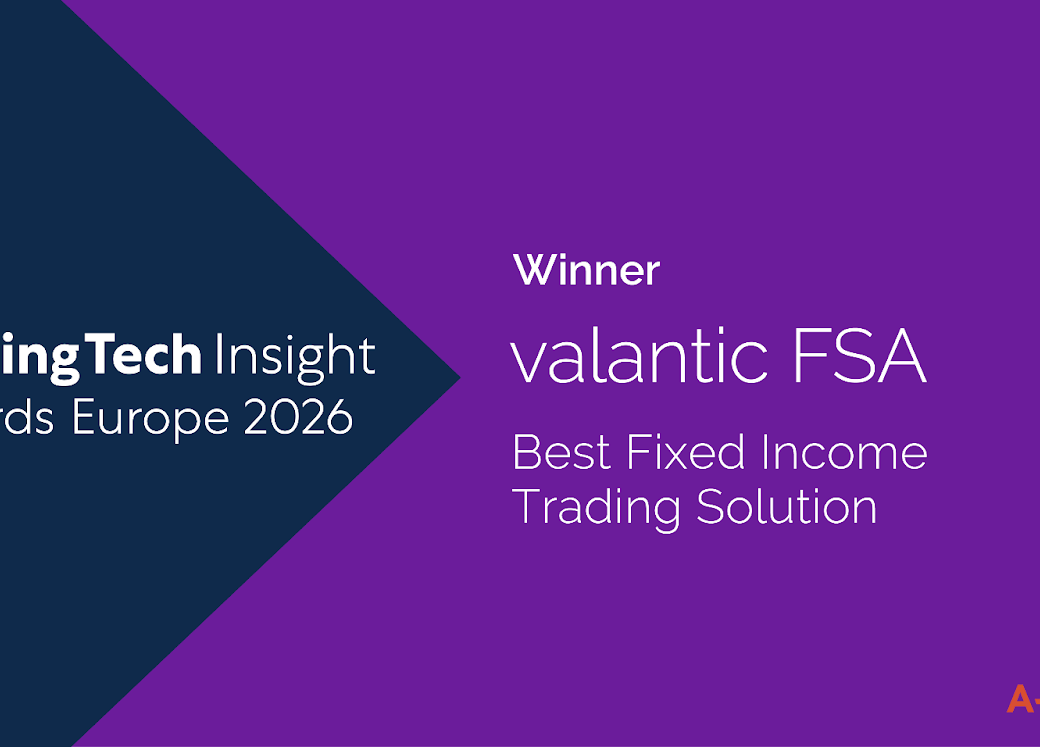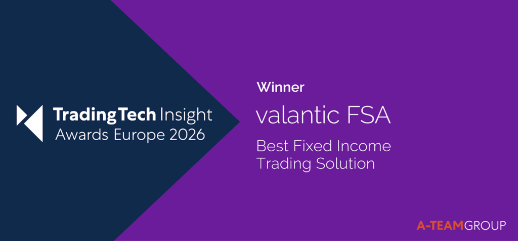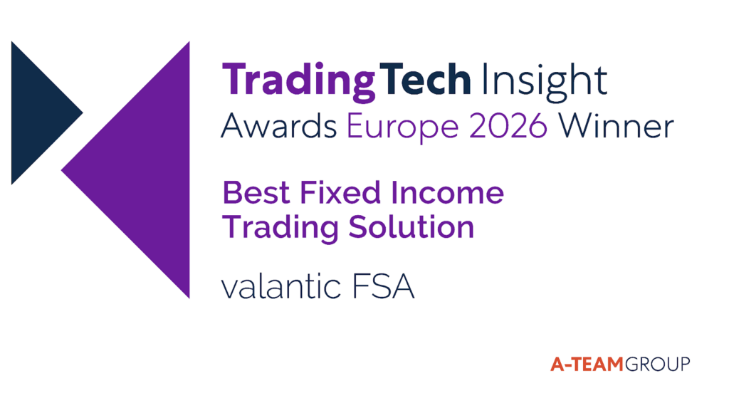Against this backdrop, valantic FSA has been recognized as the Best Fixed Income Trading Solution in the 8th annual TradingTech Insight Awards Europe, hosted by A-Team Group.